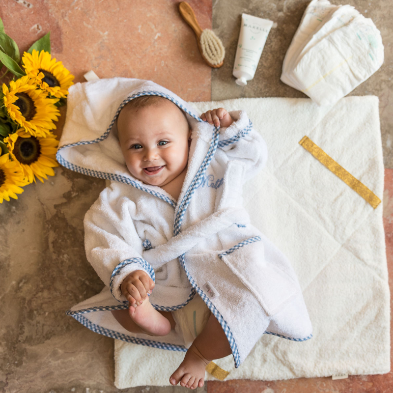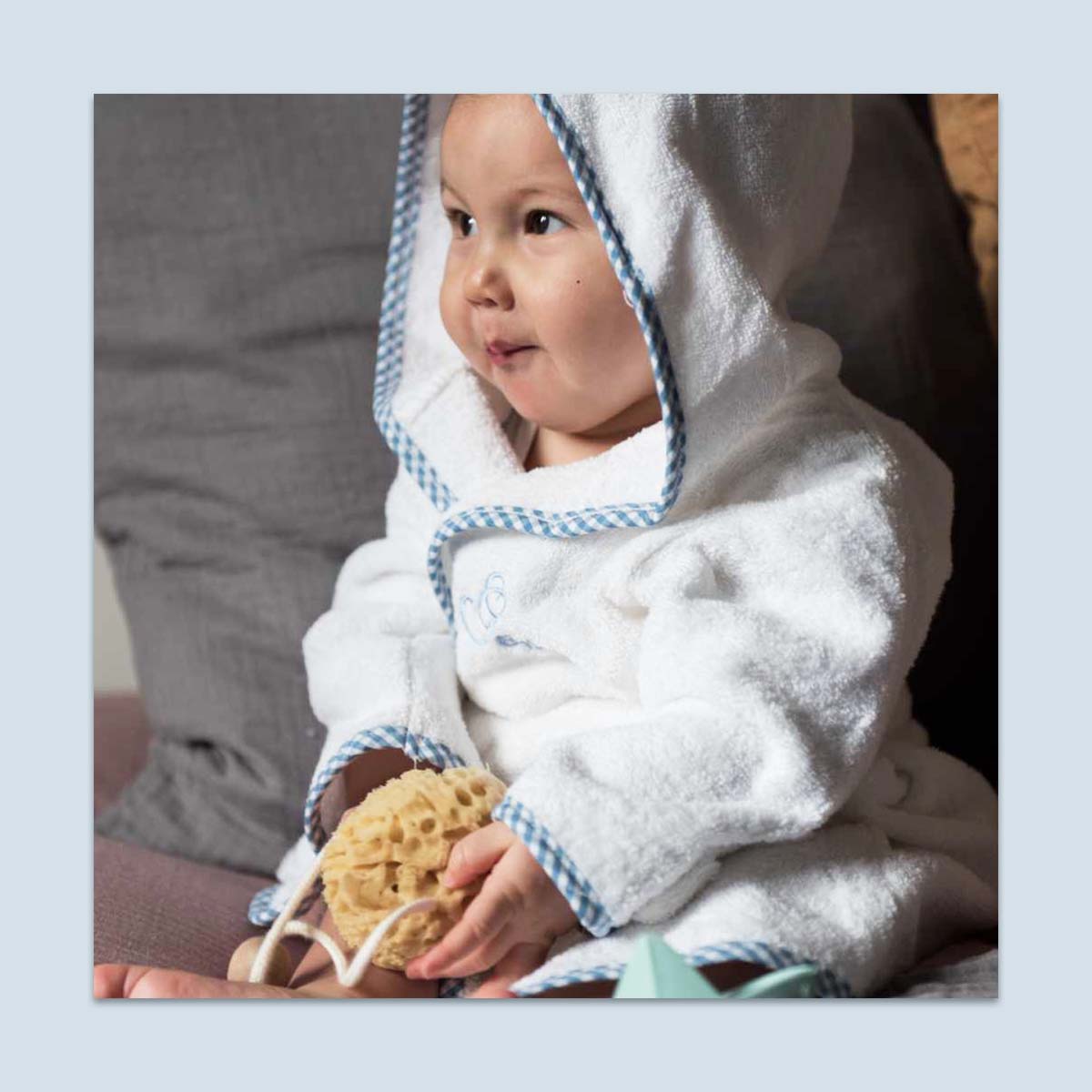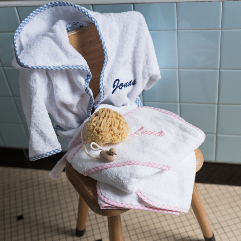 Personalisierung: Der Bademantel wird automatisch mit dem Schriftzug 1 bestickt.