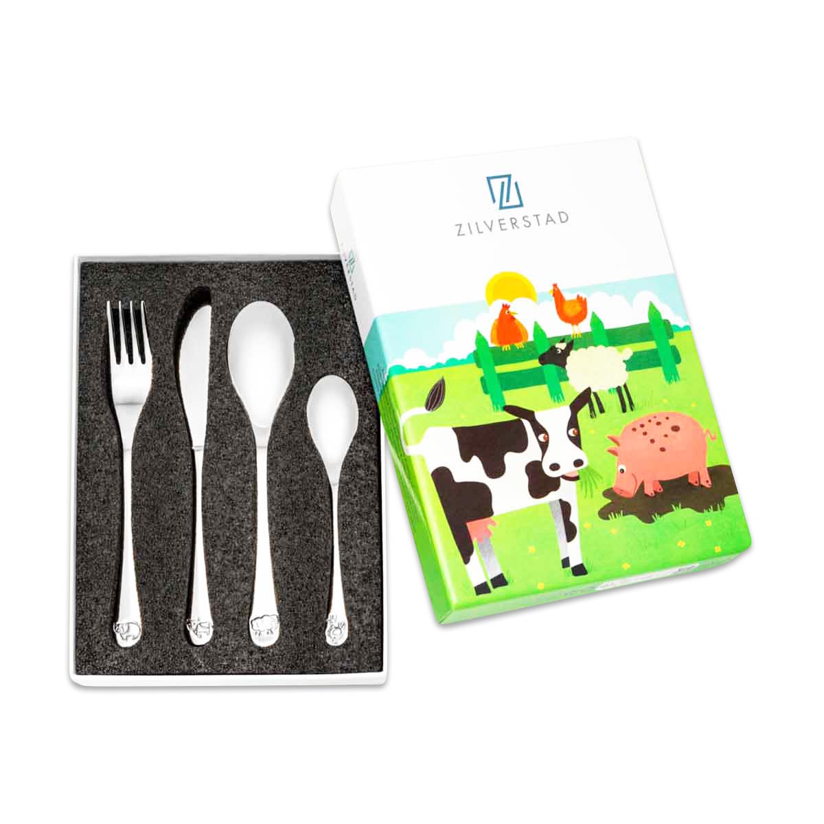 Das vierteilige Kinderbesteck mit dem zeitlosen Motiv der Bauernhof Tiere, bestehend aus einem Messer, einer Gabel, einem Grossen und einem kleinen Löffel, ist das ideale Geschenk für die Geburt, die Taufe oder den ersten Geburtstag. Es ist edel und gleichzeitig sehr praktisch denn es bleibt viele Jahre im Einsatz und kann ein Leben lang als Erinnerung aufbewahrt werden. Durch die Gravur des Namens wird dieses Geschenk einzigartig.