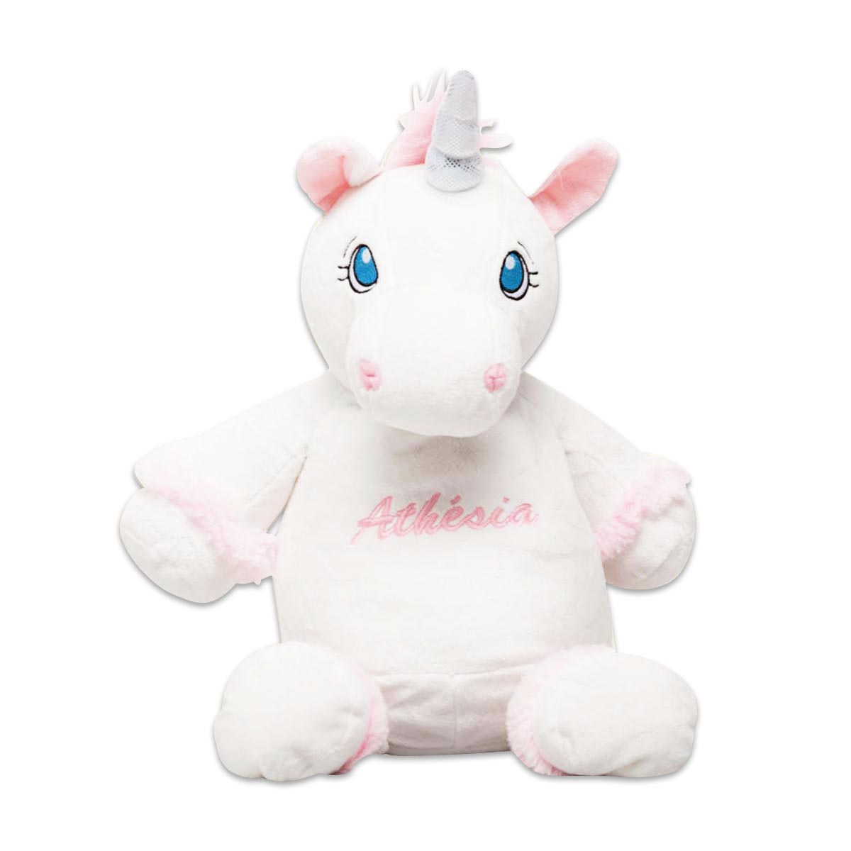 Mit einem Reissverschluss am Rücken kann das Plüschtier Einhorn zum Waschen geöffnet und die Füllung entfernt werden.Detailangaben