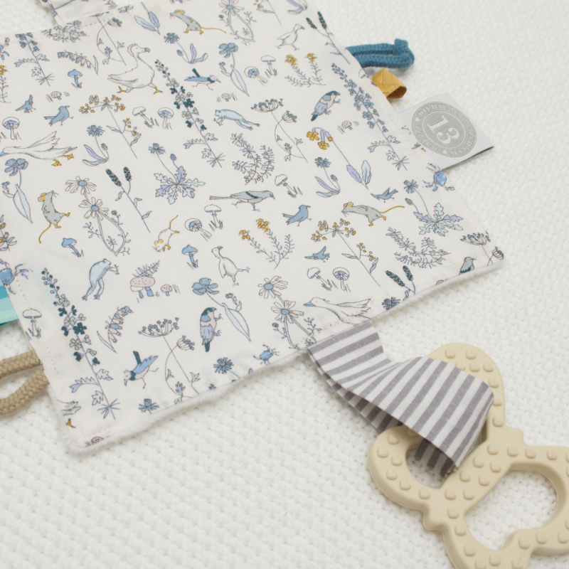 Das lustige Knistertuch mit dem niedlichen Druck 'Theo' von 'Liberty of London' mit spannenden Strukturen zum Greifen & Geräusche machen ist der perfekte Begleiter für Babys und Kleinkinder ab Geburt. Die verschiedenen Spielmöglichkeiten regen die Sinne des Babys an- das Knisterpapier, das Glöckchen und die vielen Greifelemente fördern Babys Greif- und Tastsinn sowie die Feinmotorik.
