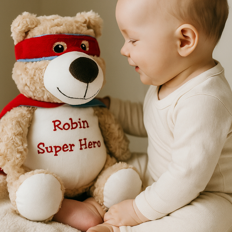 Ein Plüschtier Superheld ist ein treuer Begleiter eines Kleinkindes: Es teilt Geheimnisse mit ihm, die es sonst niemanden erzählt. Es kuschelt mit ihm- egal wo. Noch persönlicher wird das niedliche Kuscheltier, wenn es von Ihnen individuell auf das Baby abgestimmt gestaltet wird. Da können Sie sich definitiv auf viele schöne und emotionale Momente wegen Ihres Geschenkes freuen!