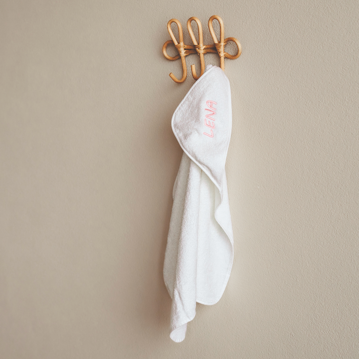 Das weiche Handtuch mit Kapuze trocknet sanft und eignet sich extra für feines Babyhaar.