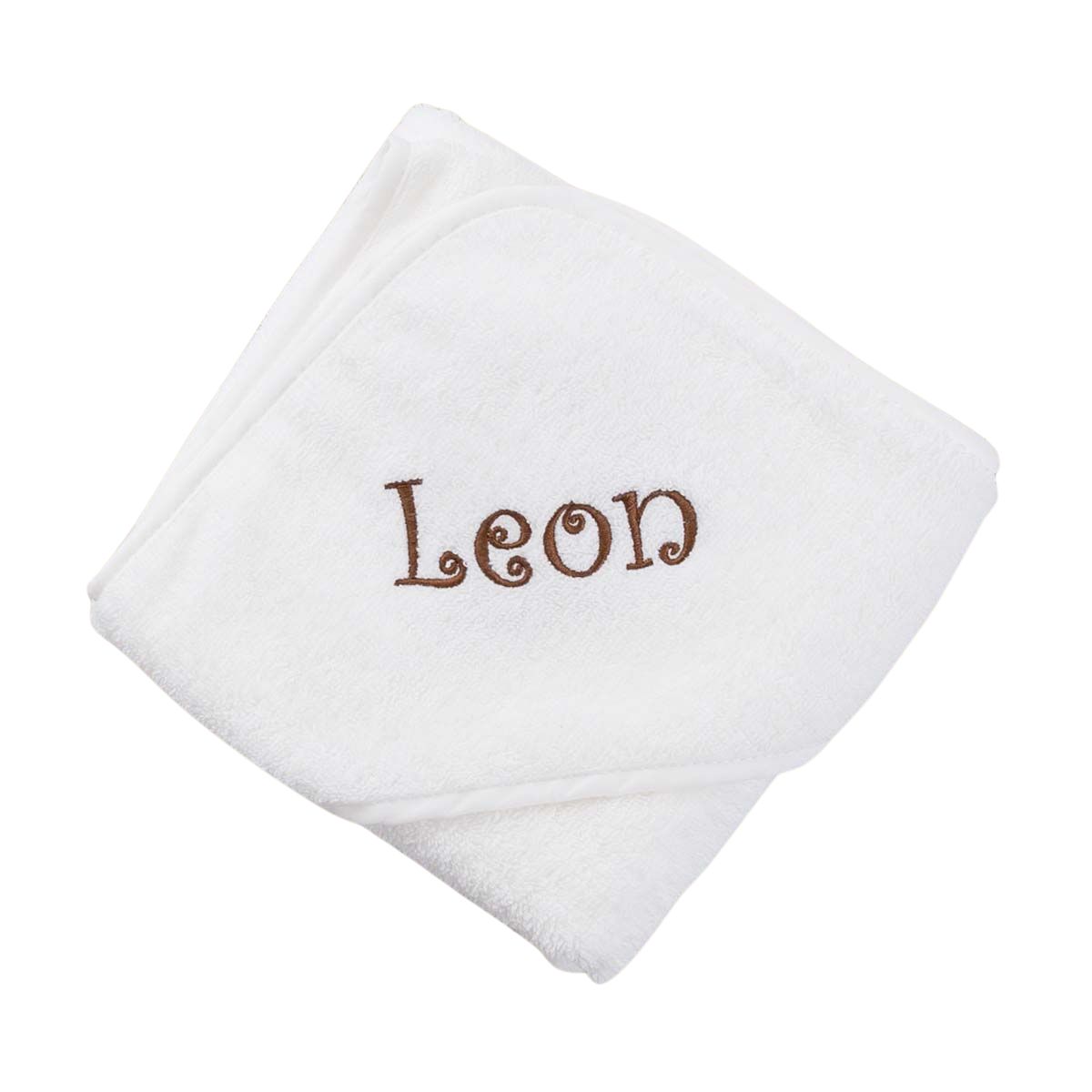 Personalisierung: Das Kapuzenhandtuch wird automatisch mit dem Schriftzug 1 bestickt.