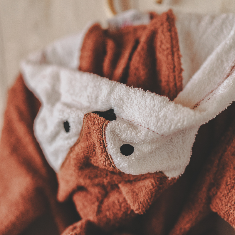 Sei schlau wie Meister Fuchs und halte das Kind nach dem Bad mit einem kuscheligen Bademantel warm.