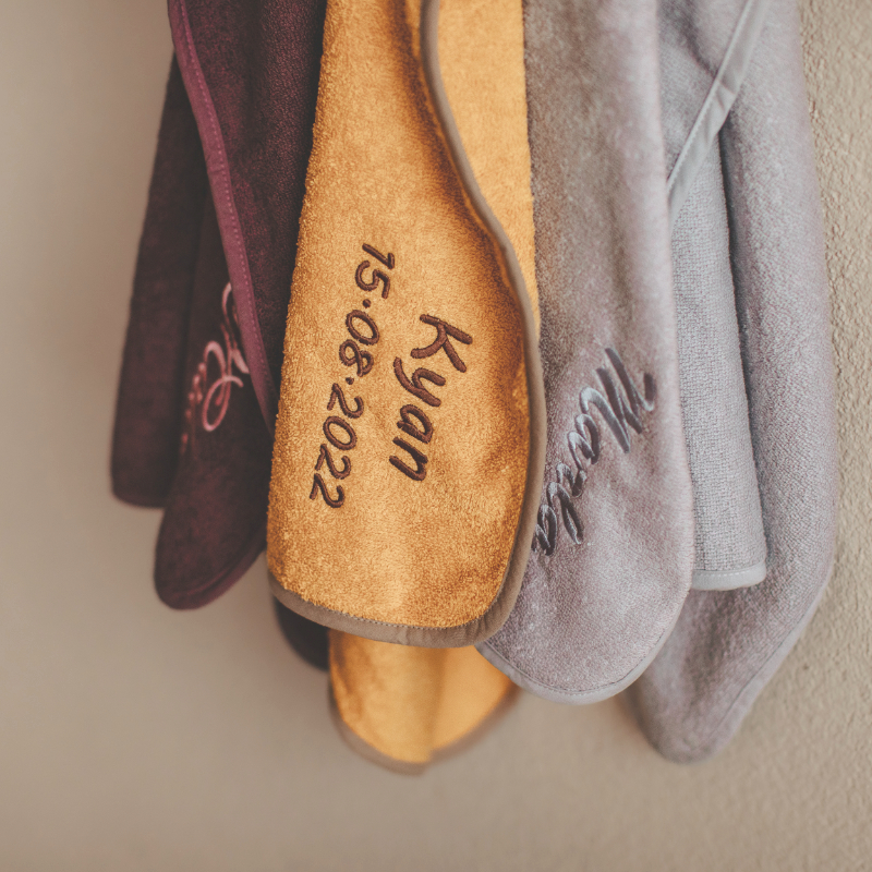 Die Personalisierung erfolgt ohne zusätzliche Kosten durch eine schöne Stickerei. Kreieren Sie ganz einfach Ihr individuelles Geschenk: