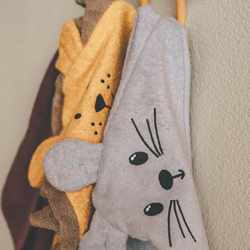 Sei schlau wie Direktor Maus und halte das Kind nach dem Bad mit einem Kapuzenhandtuch warm.