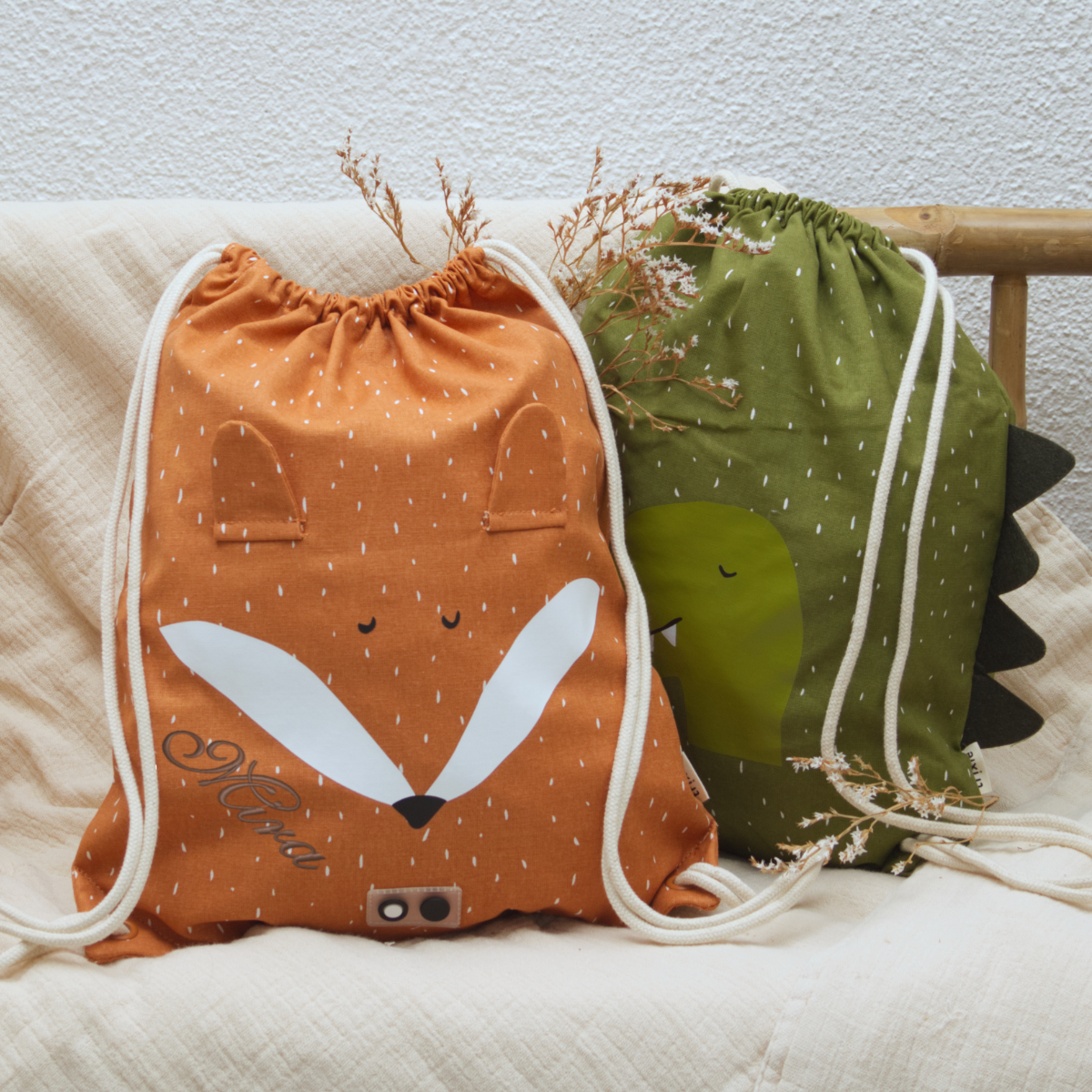 Mit den zwei Zugbändern lässt sich der Turnbeutel leicht schliessen. Im Inneren hat es ein kleines Fach mit einem Namensschild, in dem man Kleinteile wie Münzen, Schlüssel oder eine Mitgliedskarte sicher aufbewahren kann.