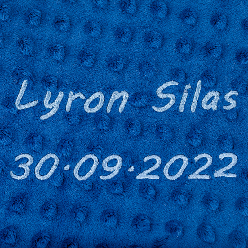 Personalisierung: Die Decke wird automatisch mit beiden Textzeilen bestickt.