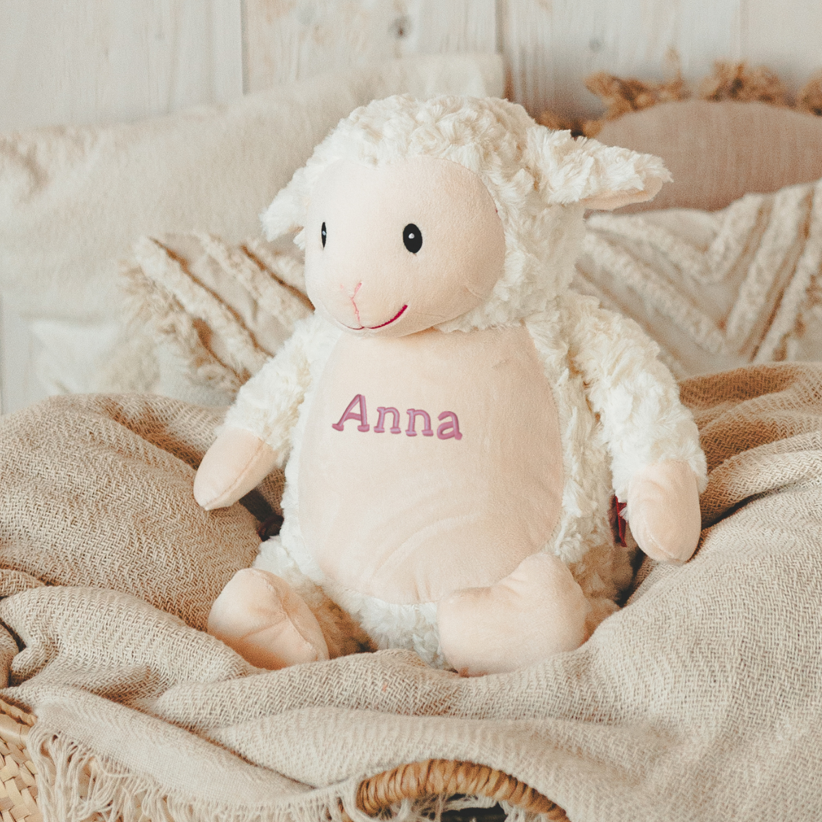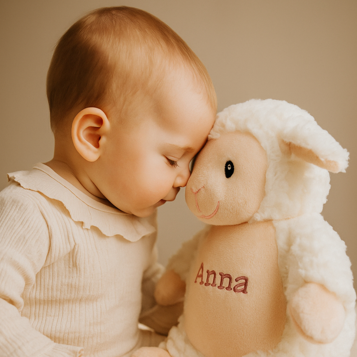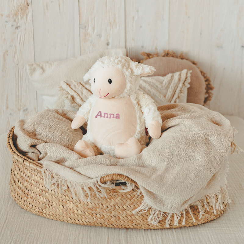 Loverby - Ein klassisches personalisiertes Teddy-Plüschtier für Kinder. Beliebt bei Jungen und Mädchen, macht das einzigartige Lamm-Design Loverby super kuschelig, das sich perfekt für Babys, Kleinkinder und kleine Kinder eignet. Dieses bis ins kleinste Detail handgefertigte, personalisierte Lamm-Plüschtier wird in höchster Qualität bestickt, was die Qualität in Aussehen, Haltbarkeit und Langlebigkeit erhöht.