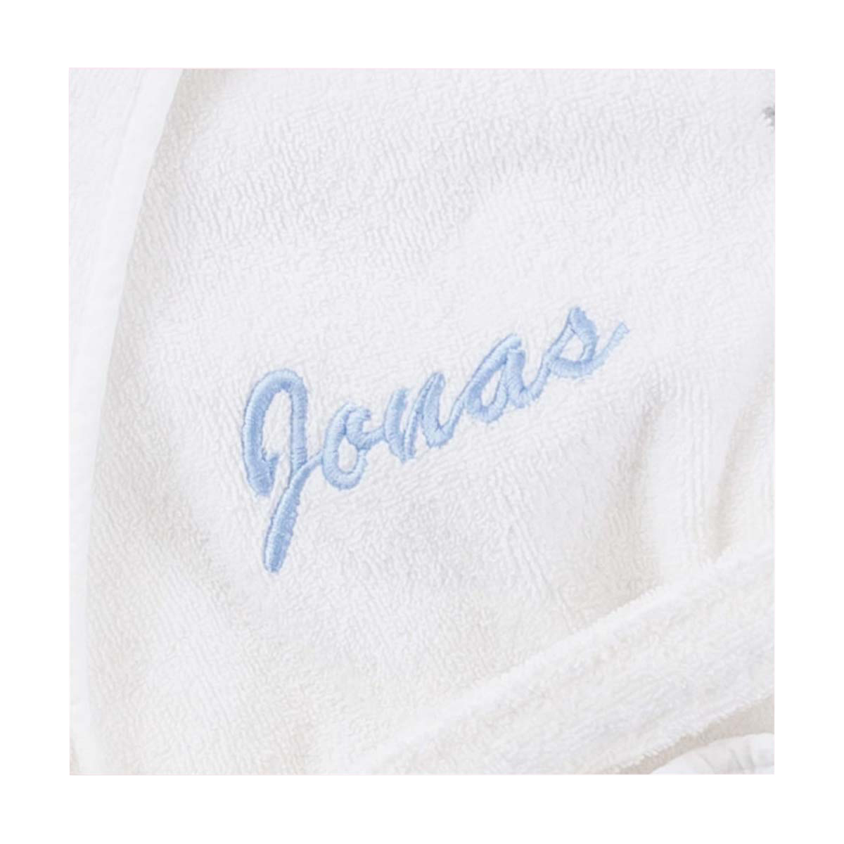 Personalisierung: Der Bademantel wird mit Ihrem Wunschtext bestickt.