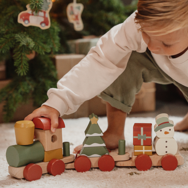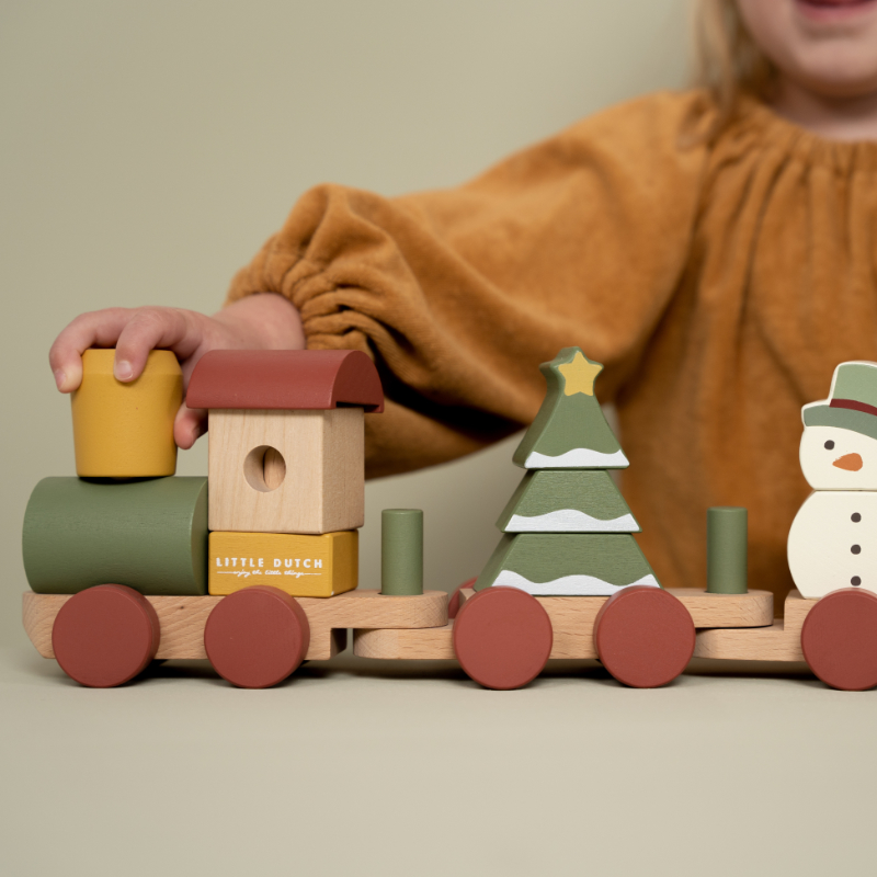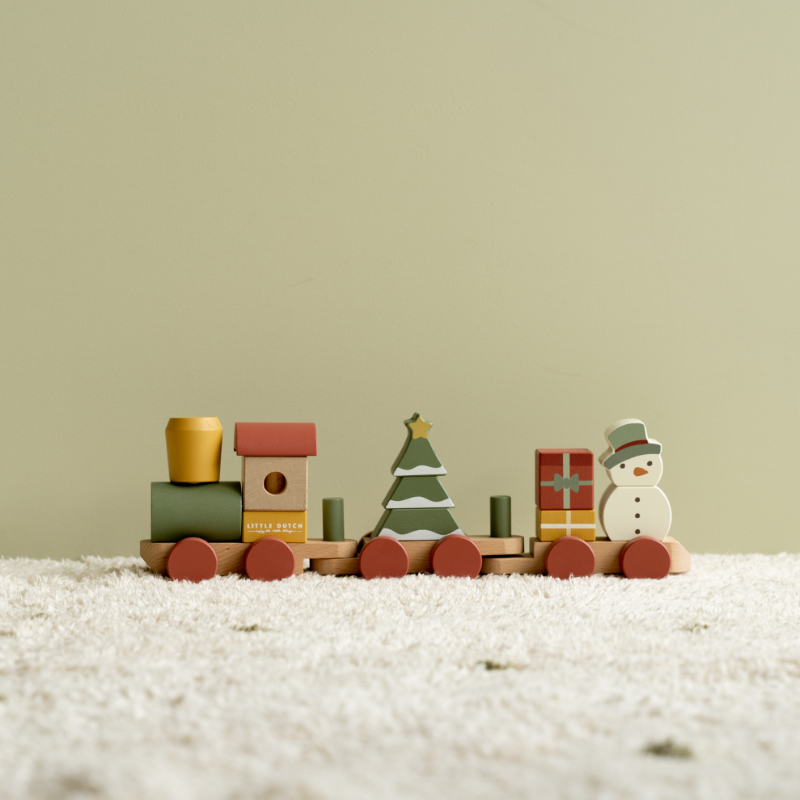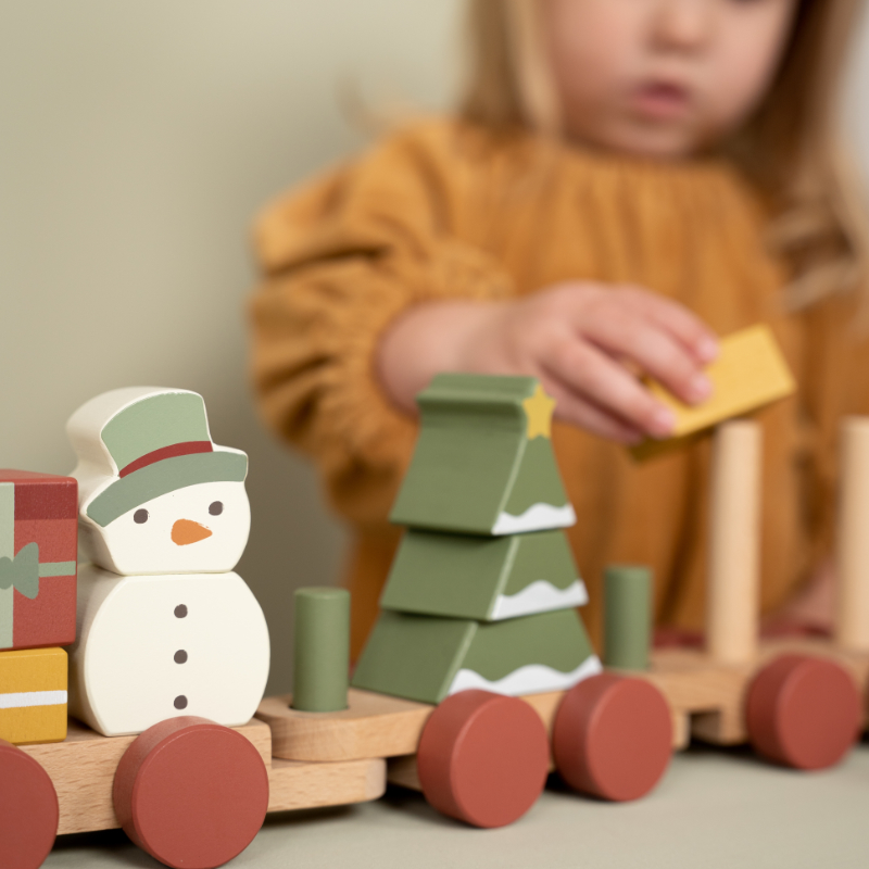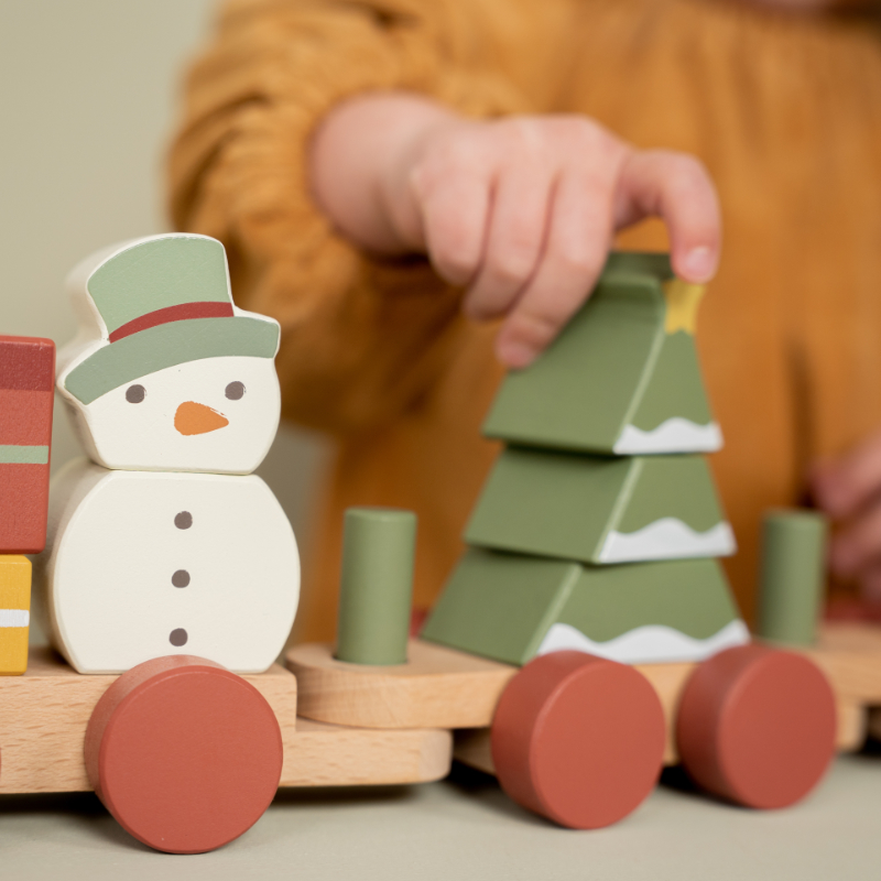 Komm an Bord des Weihnachtszuges! Hilfst du mit beim Verladen der Geschenke? Der Schneemann ist bereits eingestiegen. Baue mithilfe der Stapelblöcke in verschiedenen Formen den Weihnachtsbaum im Waggon. Der Stapelzug regt die Hand-/Augenkoordination Ihres Kindes an und fördert die Feinmotorik. Das perfekte Weihnachtsgeschenk zum Spielen während der Feiertage.