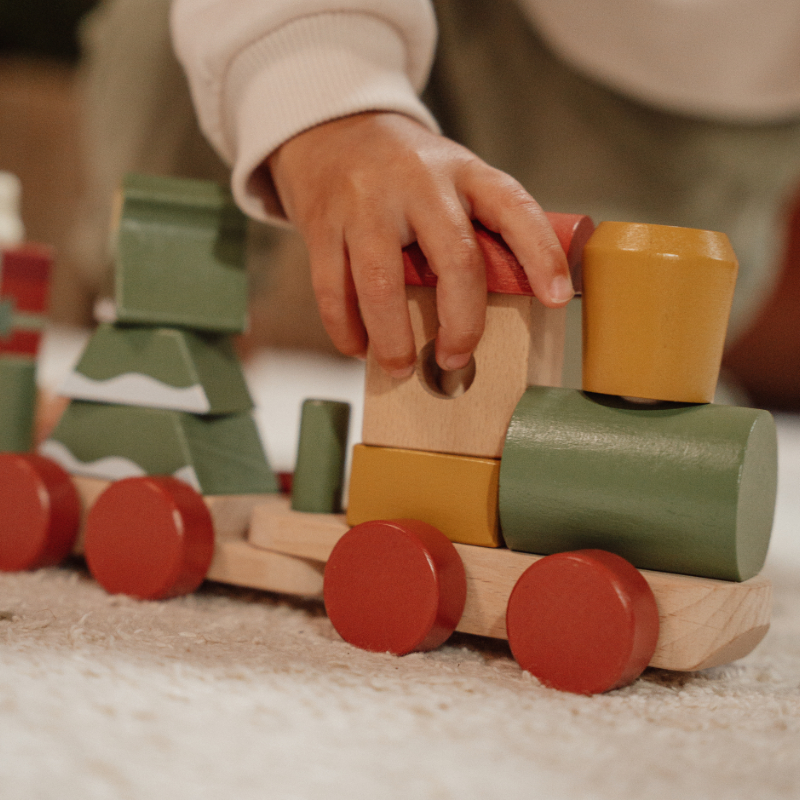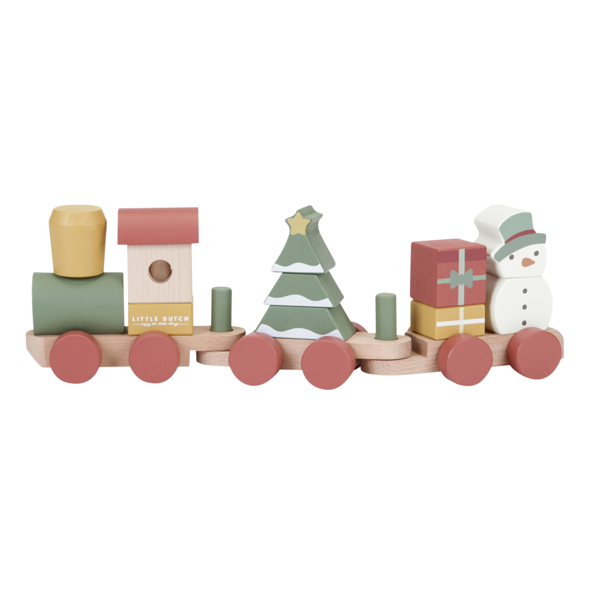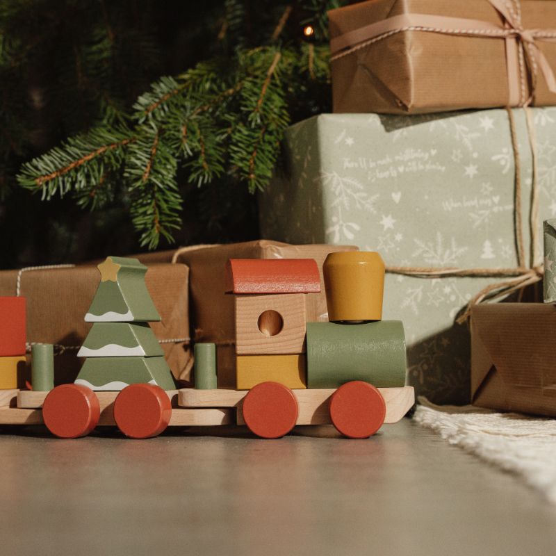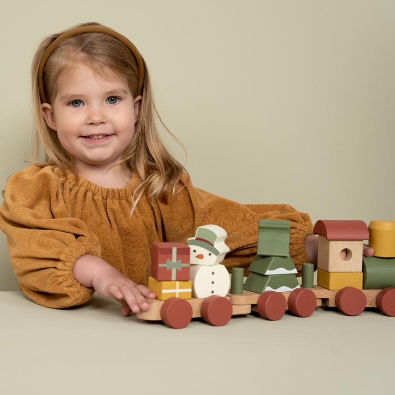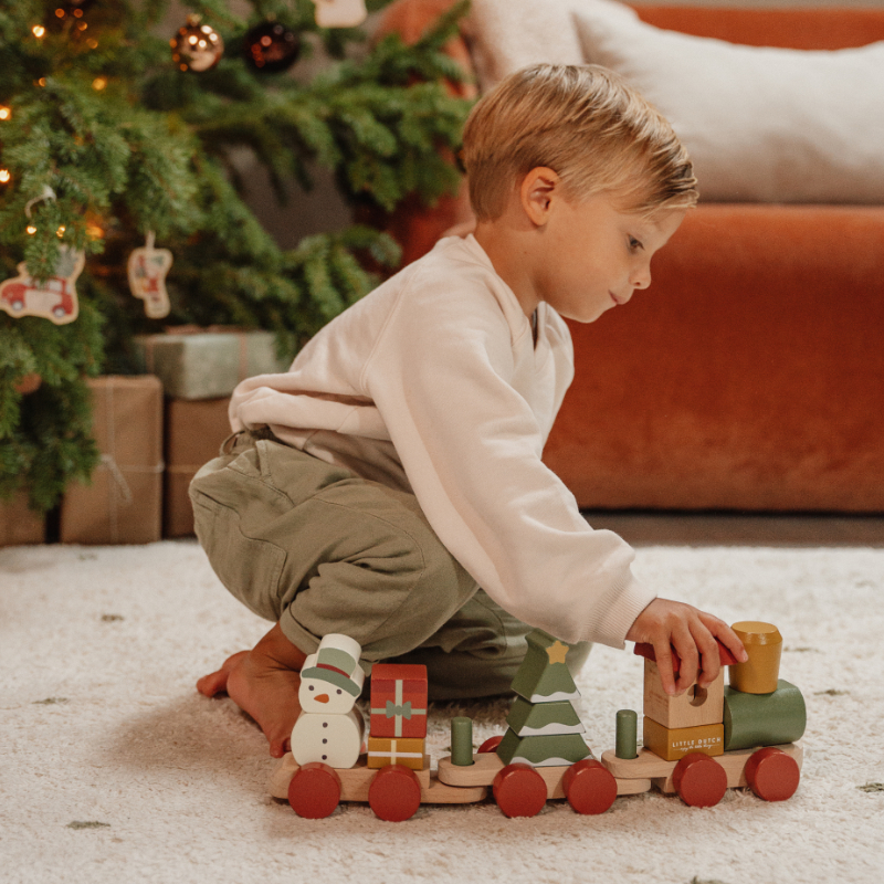 Komm an Bord des Weihnachtszuges! Hilfst du mit beim Verladen der Geschenke? Der Schneemann ist bereits eingestiegen. Baue mithilfe der Stapelblöcke in verschiedenen Formen den Weihnachtsbaum im Waggon. Der Stapelzug regt die Hand-/Augenkoordination Ihres Kindes an und fördert die Feinmotorik. Das perfekte Weihnachtsgeschenk zum Spielen während der Feiertage.