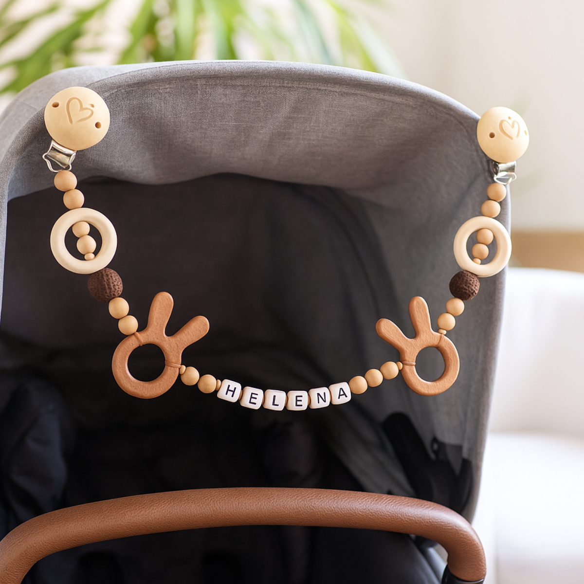 Die farb- und formschöne Kinderwagenkette lädt alle Sinne für Entdeckungen ein und ist eine herrliche Unterhaltung und Ablenkung im Kinderwagen und auf Reisen. Die Kinderwagenkette schult die Sinneswahrnehmung des Babys, gleichzeitig ist die Kette auch ein wahres Schmuckstück am Kinderwagen und wird beim Spaziergang schnell zum Hingucker.