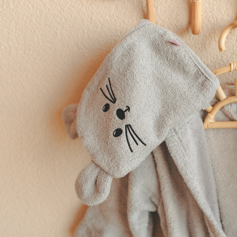 Auf Wunsch personalisieren wir den Bademantel und / oder das Kapuzentuch mit dem Namen des Kindes für ein wirklich einzigartiges, persönliches Geschenk. Bitte beachte: Der Waschlappen kann nicht personalisiert werden.