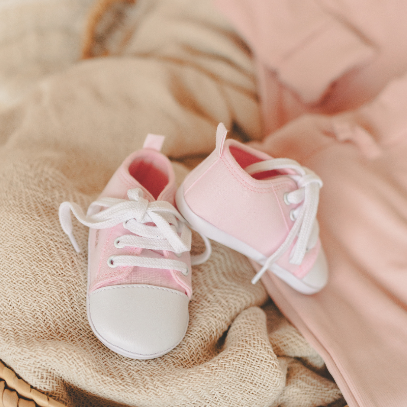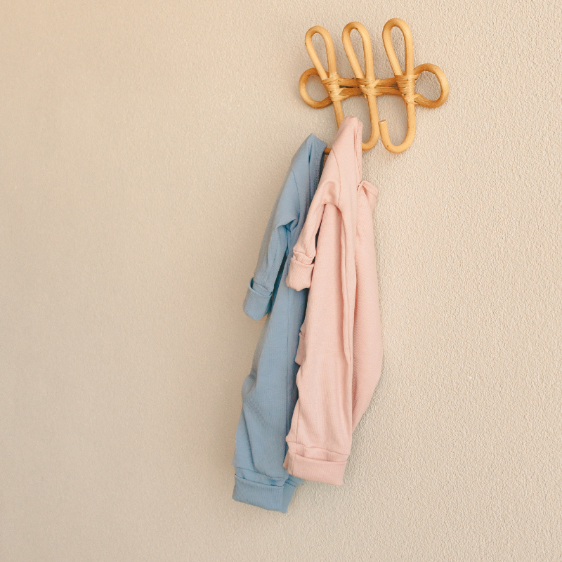 Erhältlich in Rosa oder Blau – sanfte Töne, die perfekt zum natürlichen Look des Sets passen.
