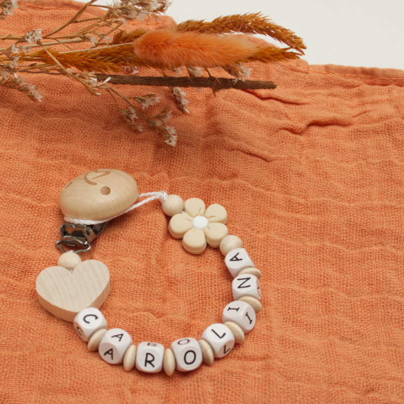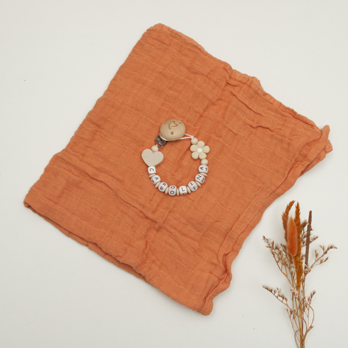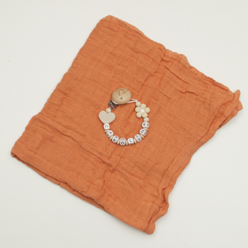 Unsere handgemachte Nuggikette wird von den beschenkten Eltern sicherlich sehr geschätzt.