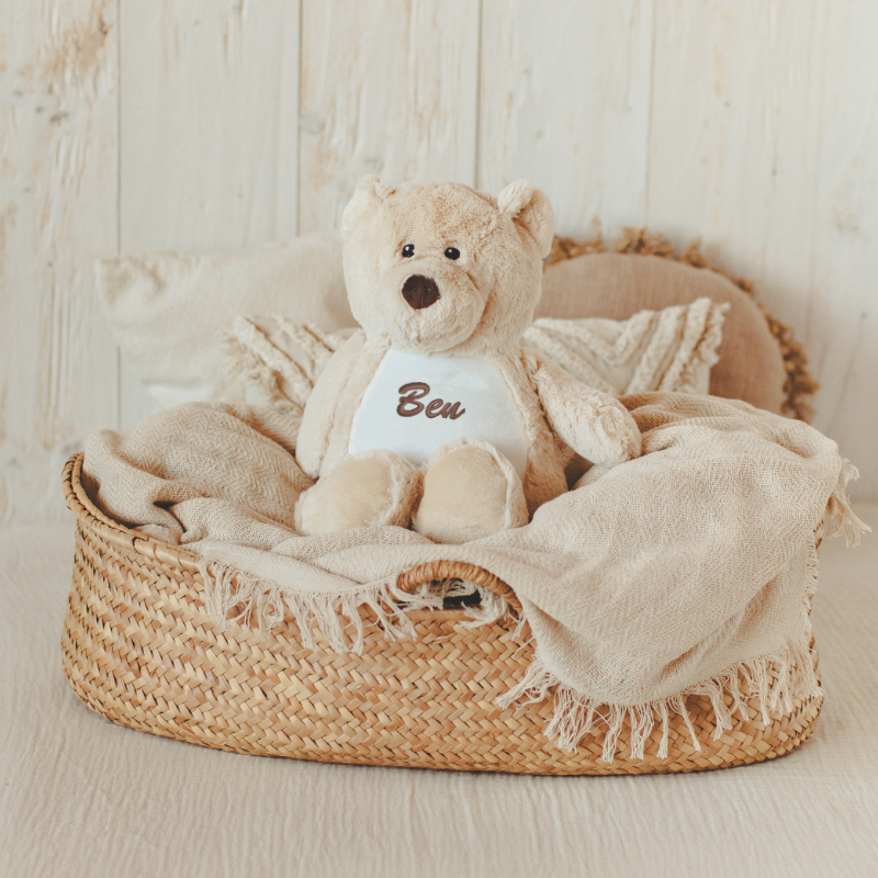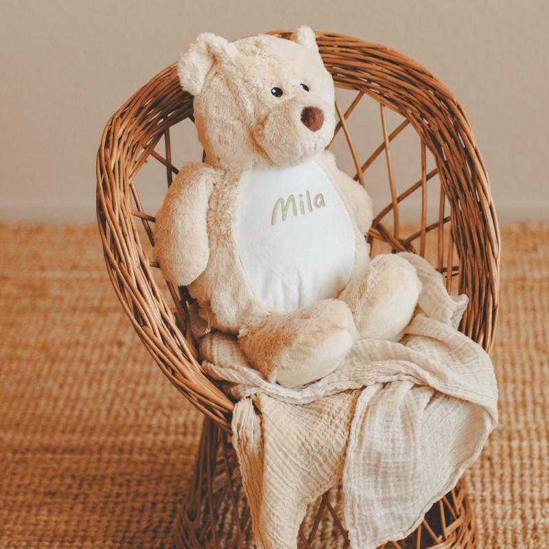 Noch persönlicher wird der niedliche Teddybär, wenn er personalisiert für das Baby gestaltet wird. Ein einzigartiges & persönliches Geschenk zur Geburt, zur Taufe oder zum Geburtstag!
