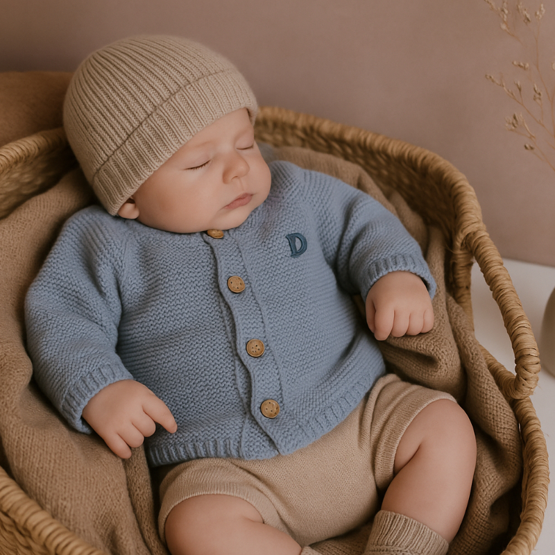 Entdecke den perfekten Begleiter für die ersten Abenteuer deines kleinen Lieblings mit unserem gestrickten Babycardigan aus 100% Baumwolle!