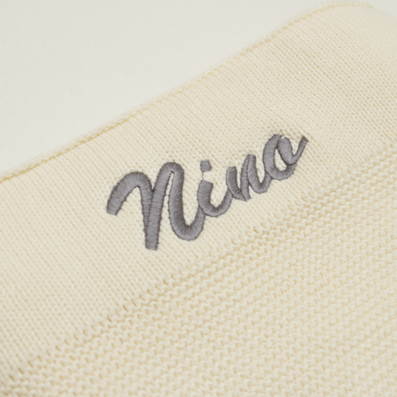 Die Personalisierung erfolgt ohne zusätzliche Kosten durch eine schöne Stickerei. Kreieren Sie ganz einfach Ihr individuelles Geschenk:
