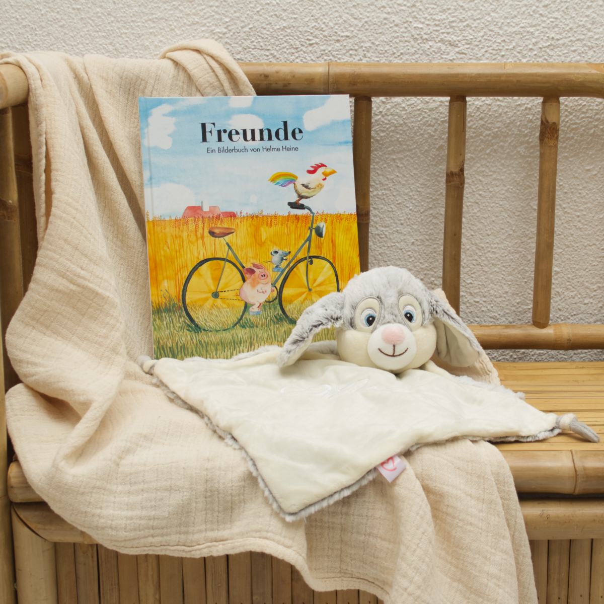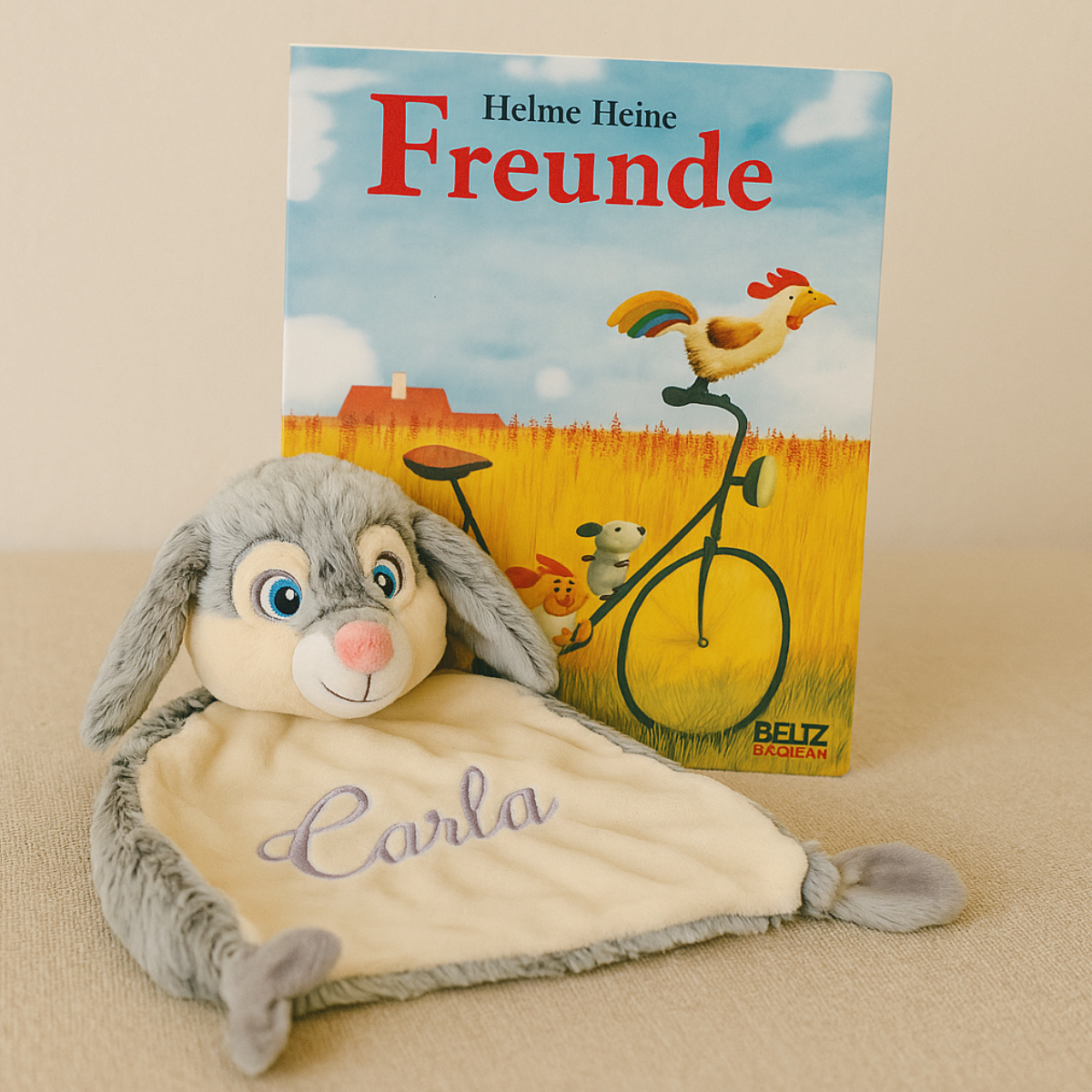 Unser Geschenkset SchmusezeitMiniist das ideale Präsent für Babys und Kleinkinder – eine süsse Kombination aus einem kuscheligen Schmusetuch und einem kleinen Kinderbuch zum ersten spielerischen Entdecken.