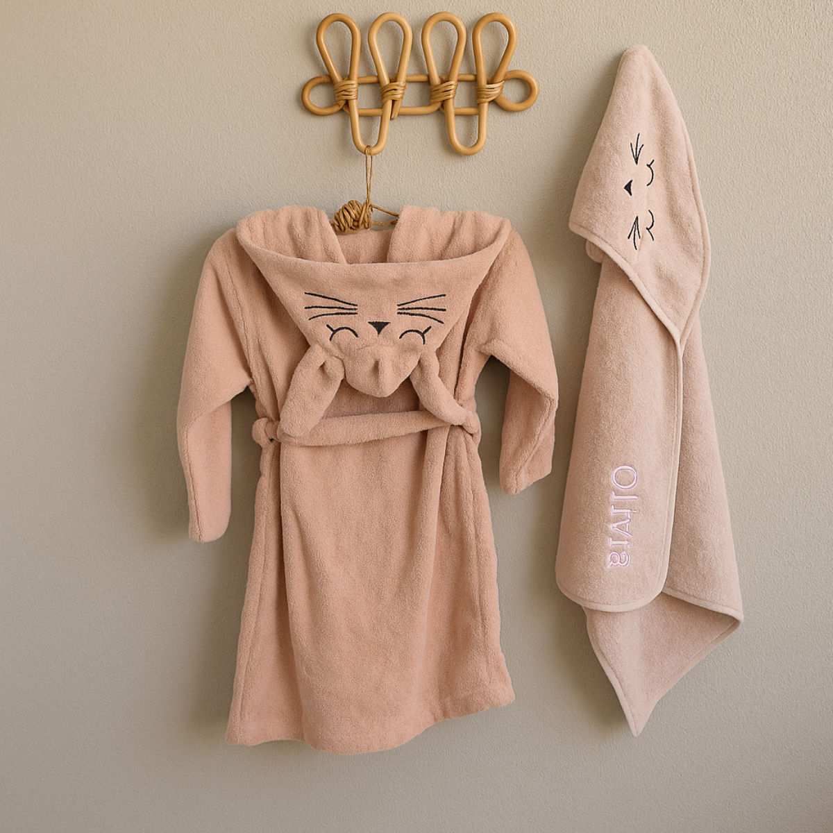 This lovingly assembled set combines two essential bath-time favorites that provide warmth, comfort, and a wonderful sense of security after bathing. Ideal as a gift for newborns, christenings, or simply as a sweet surprise.