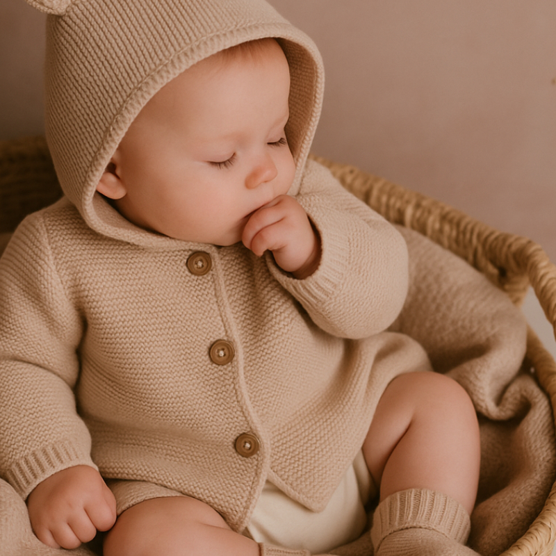 - The cardigan can be embroidered with the baby's initials.
