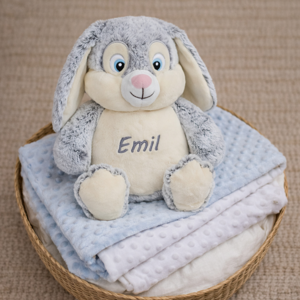 On request, we can embroider the cuddly blanket and/or soft toy with the baby's name. This creates a unique, personal keepsake that will make little hearts beat faster.