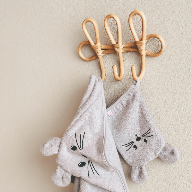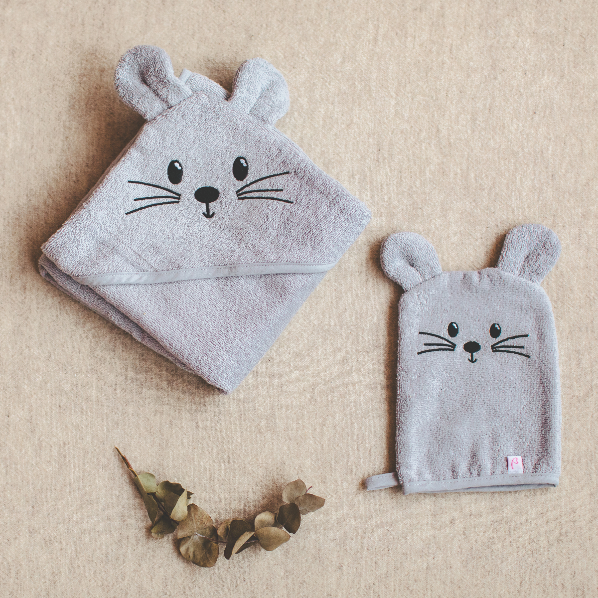 Our Bath Time Mini Gift Set is the ideal companion for cosy moments of well-being after bath time. It combines high-quality organic materials with a cute animal design – perfect for babies' delicate skin.