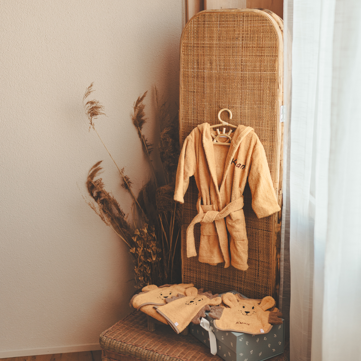 A high-quality, cosy and perfectly coordinated gift set that ensures moments of pure bliss, both in the bathroom and when cuddling. Ideal for births, christenings or as an exclusive gift for your favourite little ones.