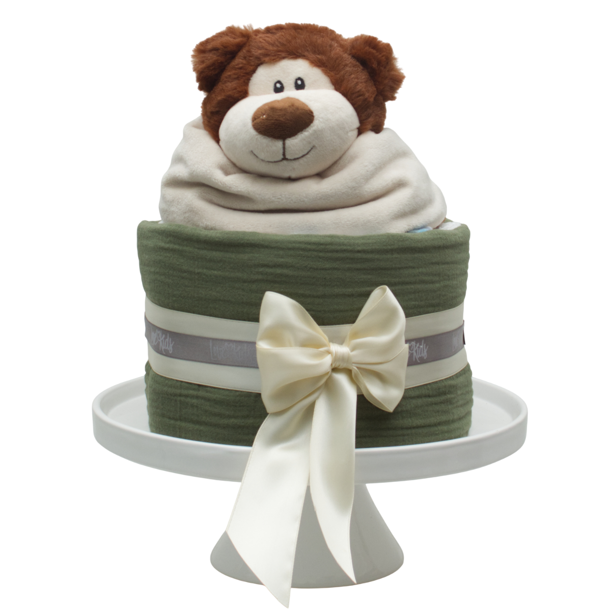 At Love Kids, every nappy cake can be personalised with the baby's name on request. Decorated with this detail, it makes a wonderfully personalised & unique birth gift. Discover our large selection of handmade nappy cakes in various sizes.