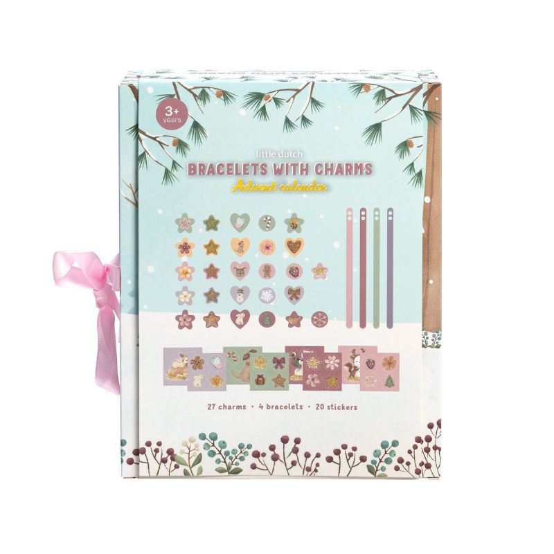 The Little Dutch Advent calendar is in book form with 24 compartments to open. It contains bracelets, charms & stickers.