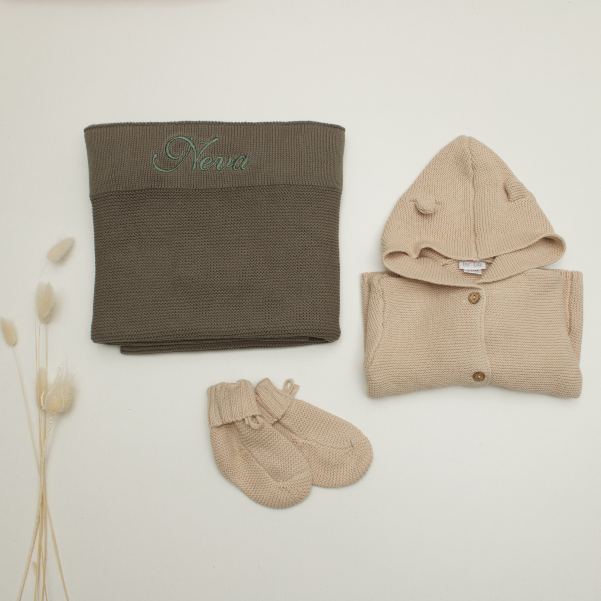 Our high-quality knitted baby gift set is the perfect gift for births, christenings or baby showers.