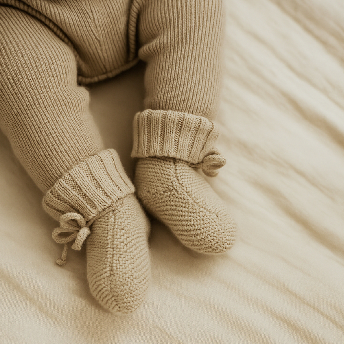 - Baby knitted shoes made from 100% cotton (Oeko-Tex Standard 100). Size: one size.