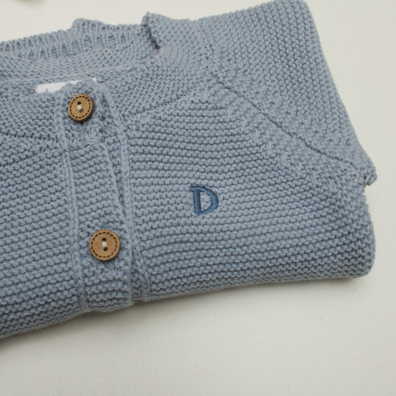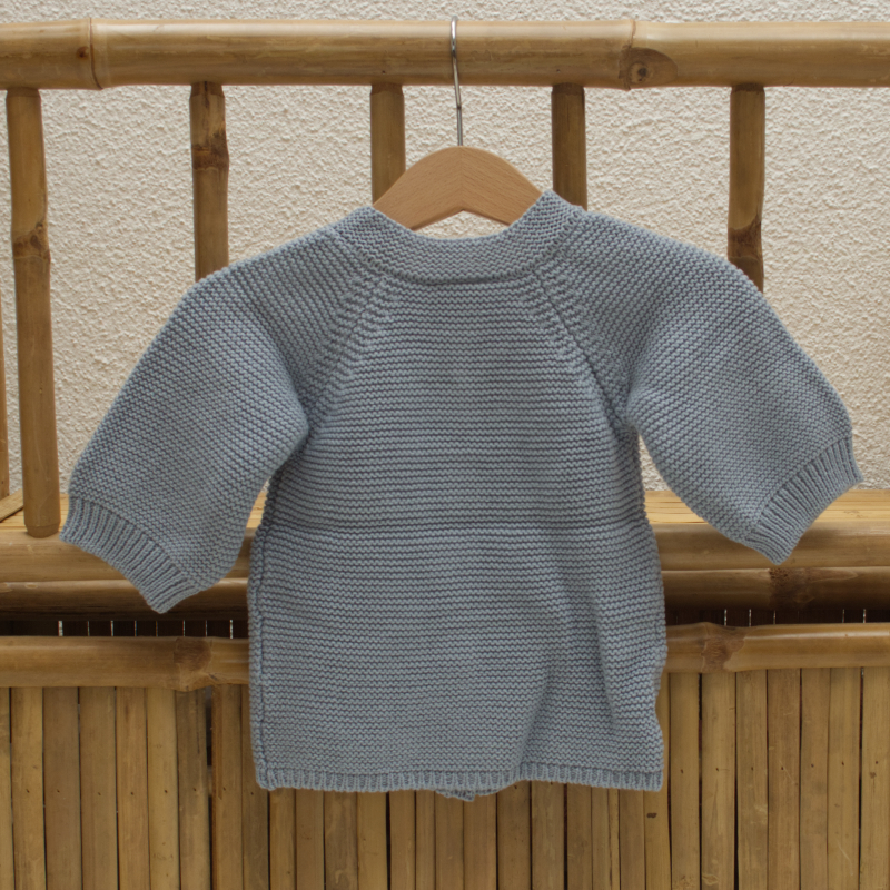 - Cardigan made from 100% cotton (Oeko-Tex Standard 100), decorated with natural wooden buttons. Available in two sizes: 3-6 months or 6-12 months.