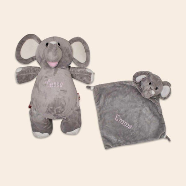 For embroidery on the plush toy and comfort blanket, please note the information above the text entry lines.
