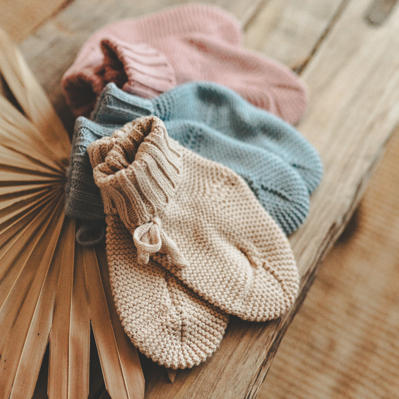 Ajoutez une touche de confort aux petits pieds de votre bébé avec nos chaussons tricotés 100% coton !