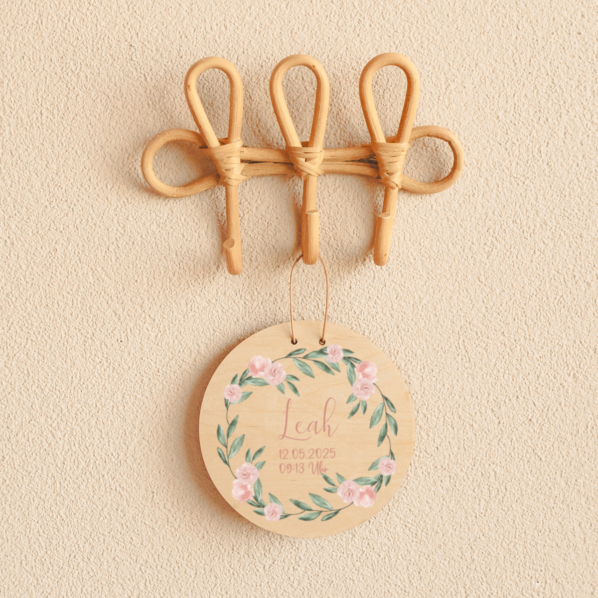 L'impression de haute qualité est complétée sur demande par le nom de l'enfant et fait du panneau un accroche-regard affectueux sur la porte, le mur ou l'étagère. Un cadeau unique pour une naissance, un baptême ou un anniversaire - décoratif, personnel et durable.