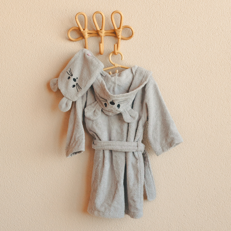 Coffret trois pièces composé d'un peignoir Directeur Souris avec flanelle assortie et d'un savon pour bébé d'Enfance Paris, parfait pour tout moment de bain. La personnalisation rend les articles uniques et garantit que vous regarderez ce doux cadeau de bébé avec le sourire pendant de nombreuses années.