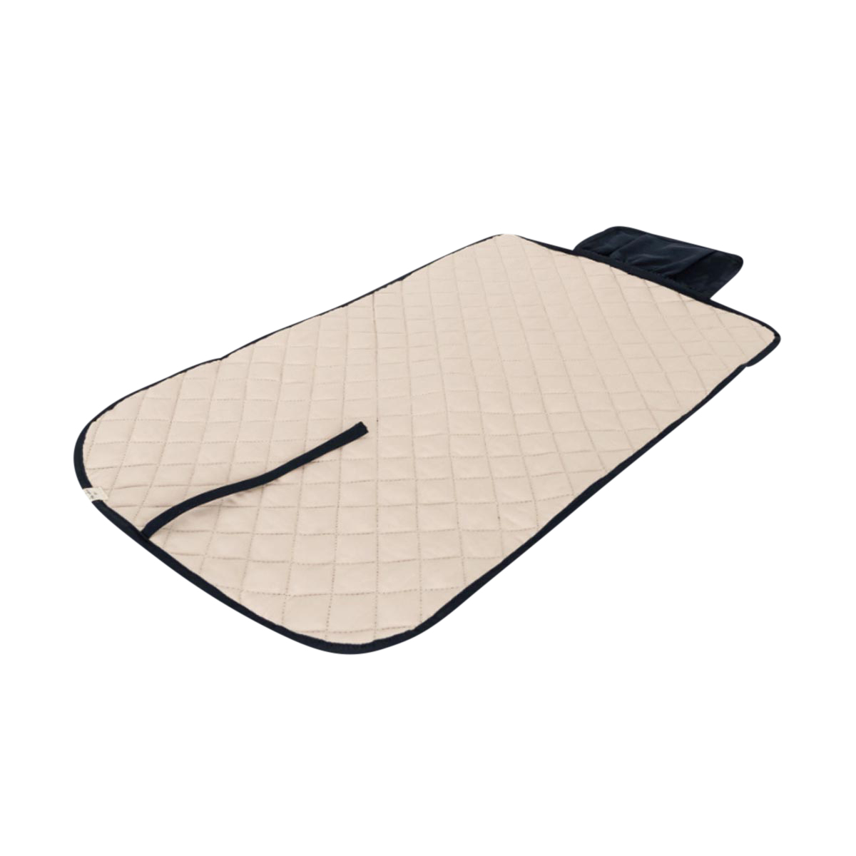 Un mini matelas à langer en 100% polyester avec un rembourrage en 100% polyester.