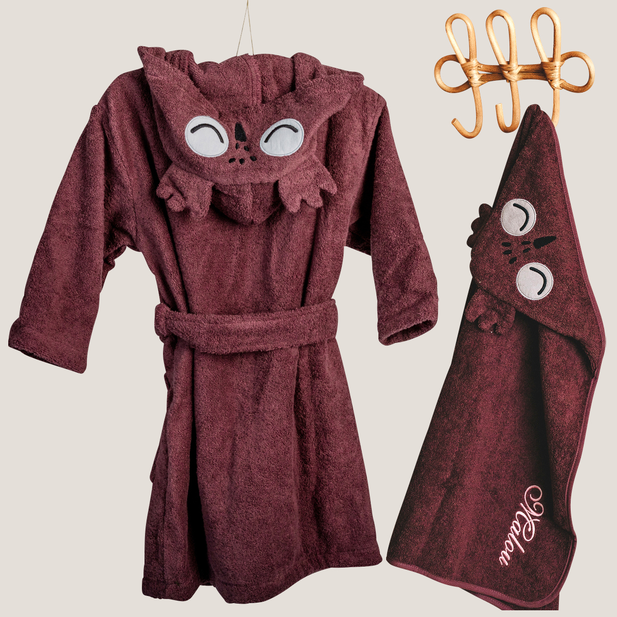 Sur demande, nous personnalisons le peignoir et/ou la cape de bain avec le prénom de l’enfant, pour un cadeau vraiment unique et personnel.