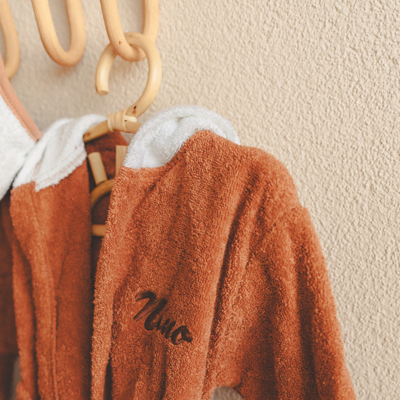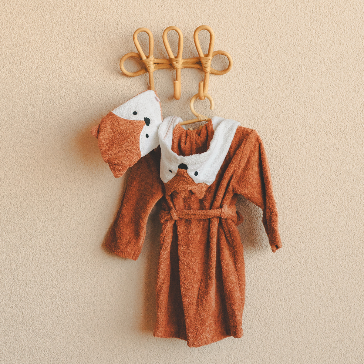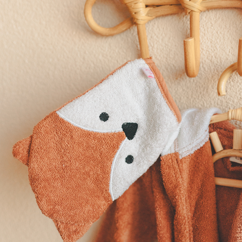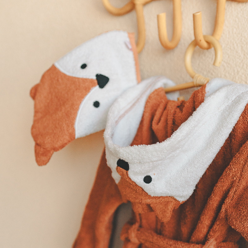 Set de deux pièces composé d'un peignoir avec un motif de renard et d'un gant de toilette assorti, parfait pour chaque jour de bain. La personnalisation rend les articles uniques et garantit que cet adorable cadeau pour bébé sera encore regardé avec le sourire dans de nombreuses années.
