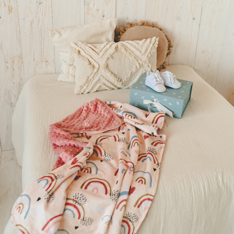 •    Une couverture pour bébé en minky (100 % polyester), 100 × 75 cm