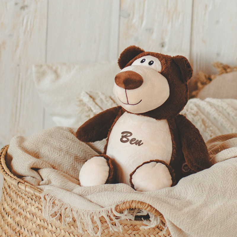 Sur demande, nous brodons le nom de l'enfant sur la peluche et/ou le doudou. Vous obtenez ainsi un souvenir personnel qui fera longtemps plaisir.