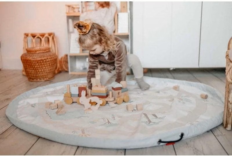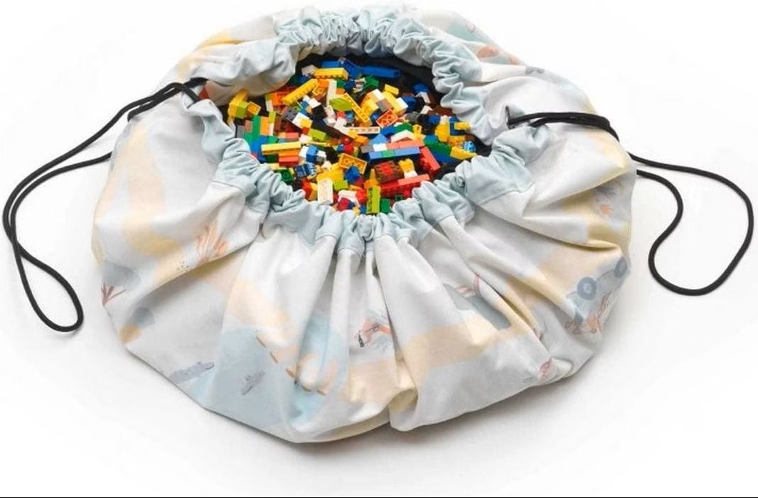Qui connaît cette situation ? Des jouets éparpillés partout, sous le lit, sur le sol et dans le salon, mais le jouet préféré est tout simplement introuvable. Voici la solution : un sac de jeu de Play&Go ! Ce sac permet de tout ranger, que ce soit des Lego, des Duplo, des Playmobil, des poupées, des jouets de sable ou des balles. Entièrement ouvert, le sac peut servir de tapis de jeu qui, une fois le jeu terminé, se transforme à nouveau en sac en tirant simplement sur la cordelette. C'est simple, sûr et bien rangé ! Le sac peut être emporté à la plage, au parc, en visite et en vacances.