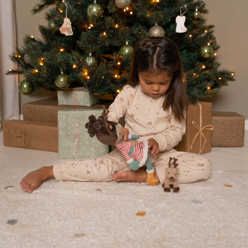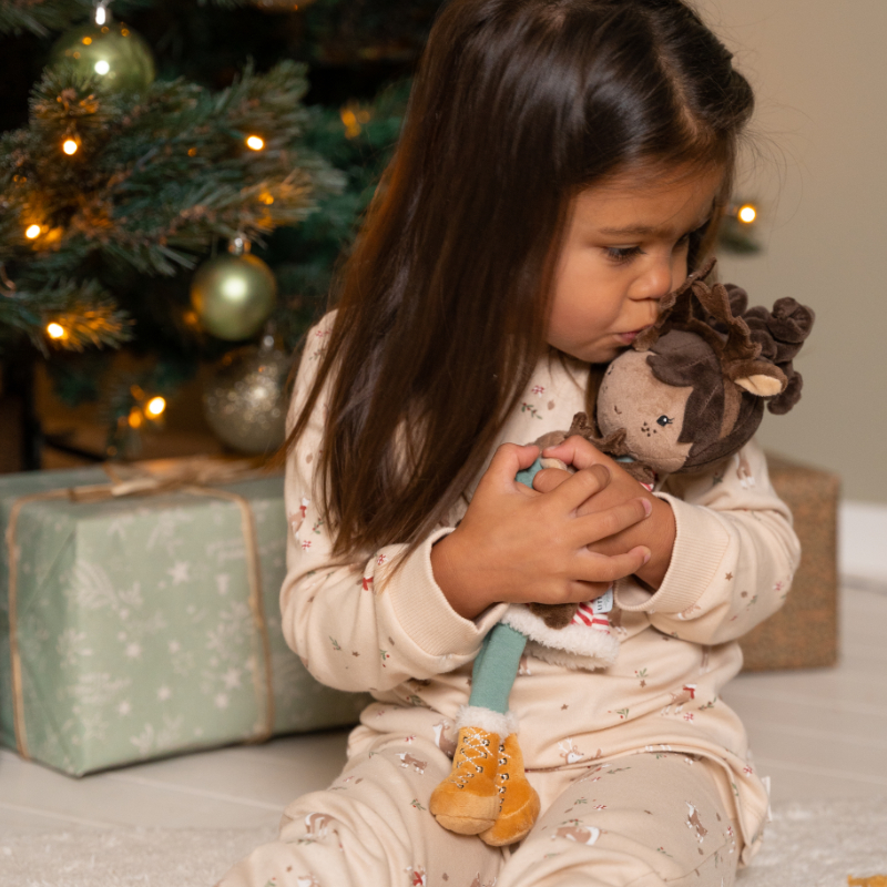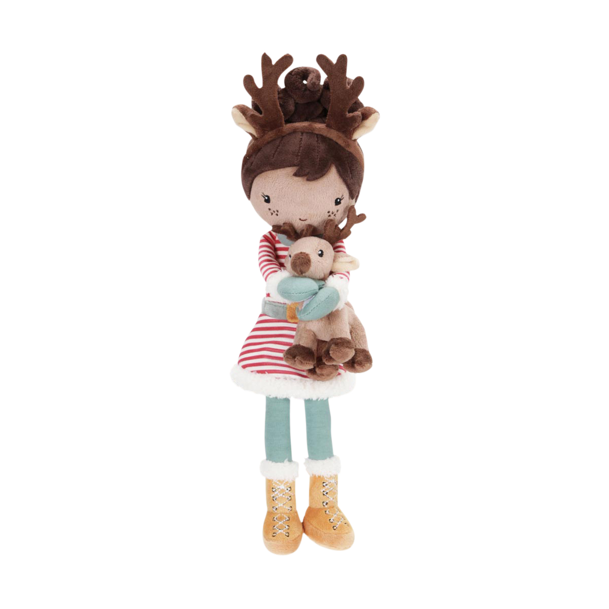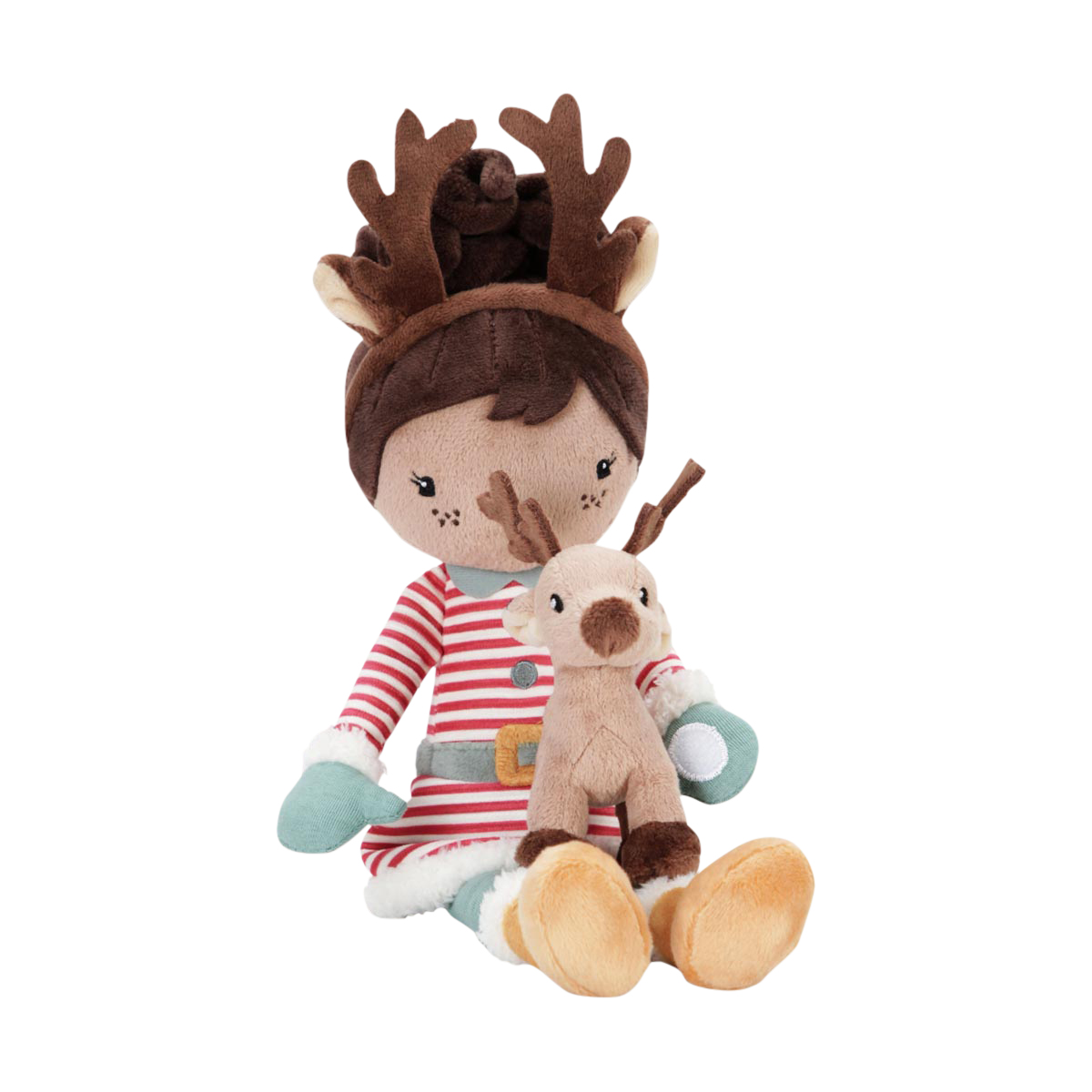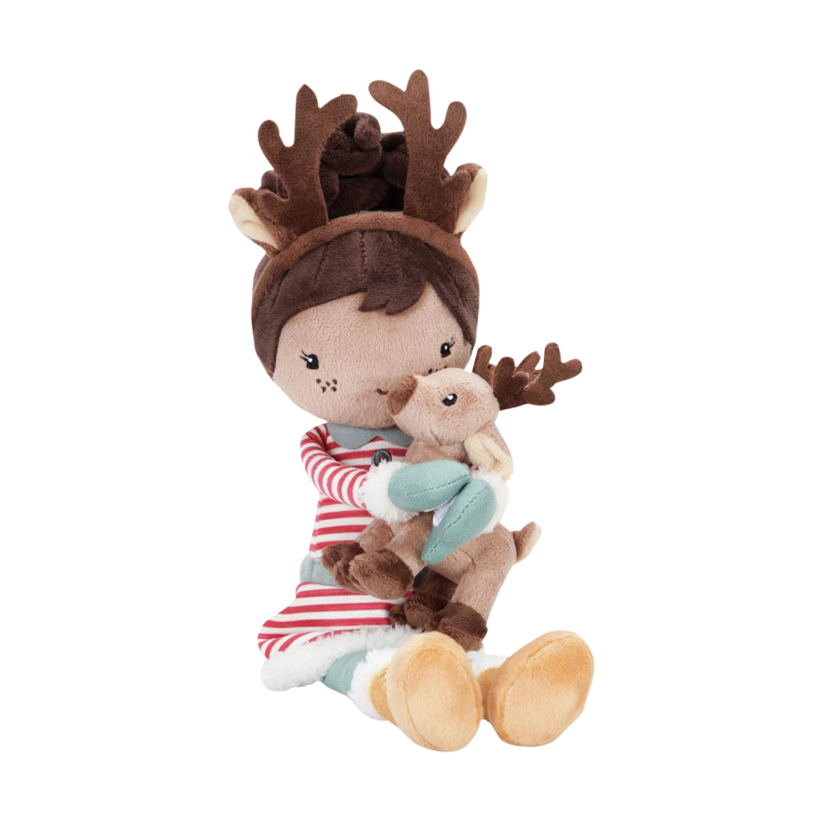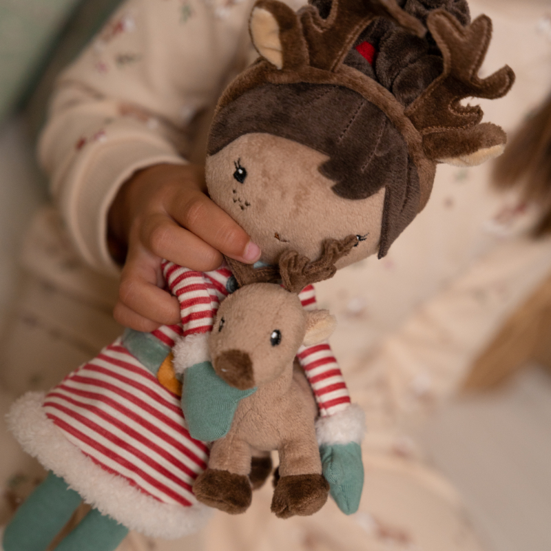 L'adorable poupée en peluche Evi avec un renne dans les bras fait battre le cœur des enfants.