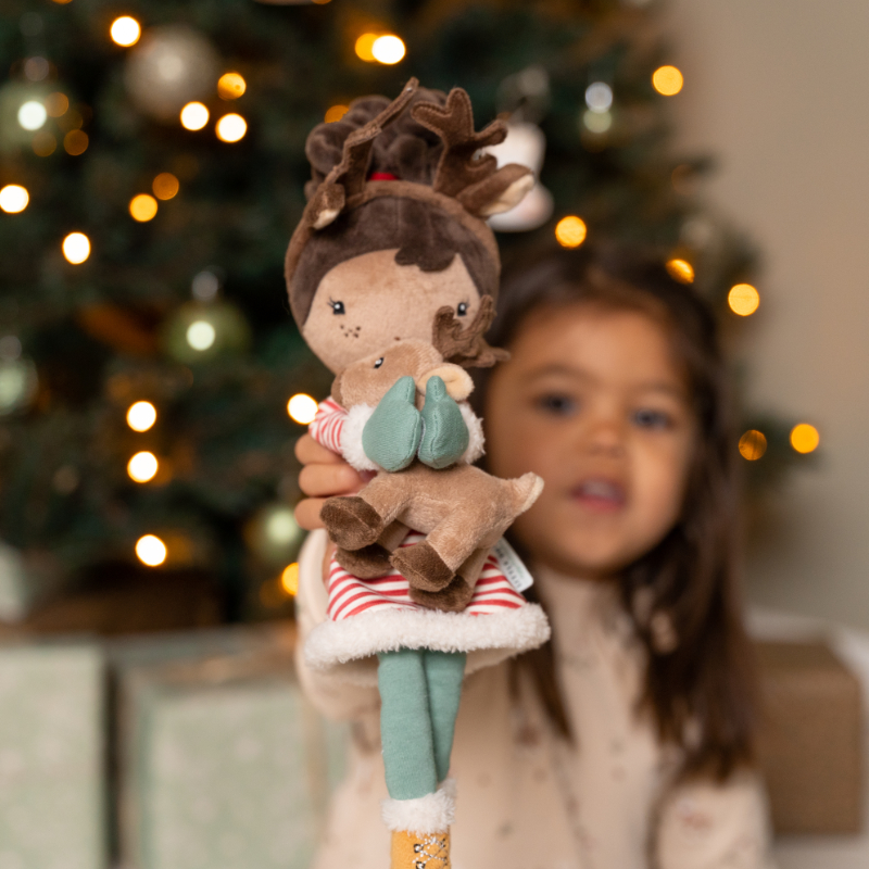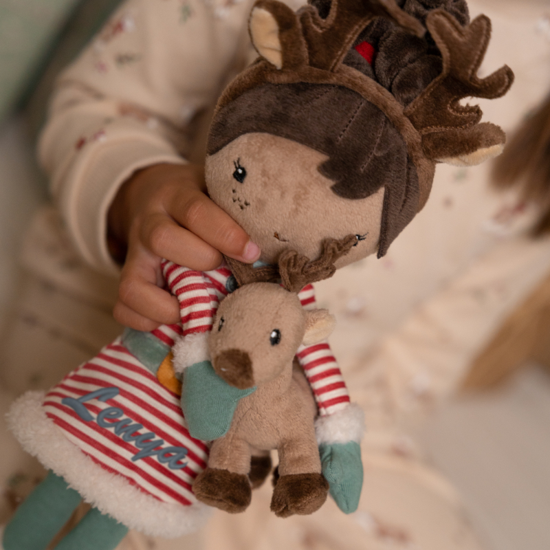 L'adorable poupée câline Evi avec un renne dans les bras fait battre le cur des enfants.